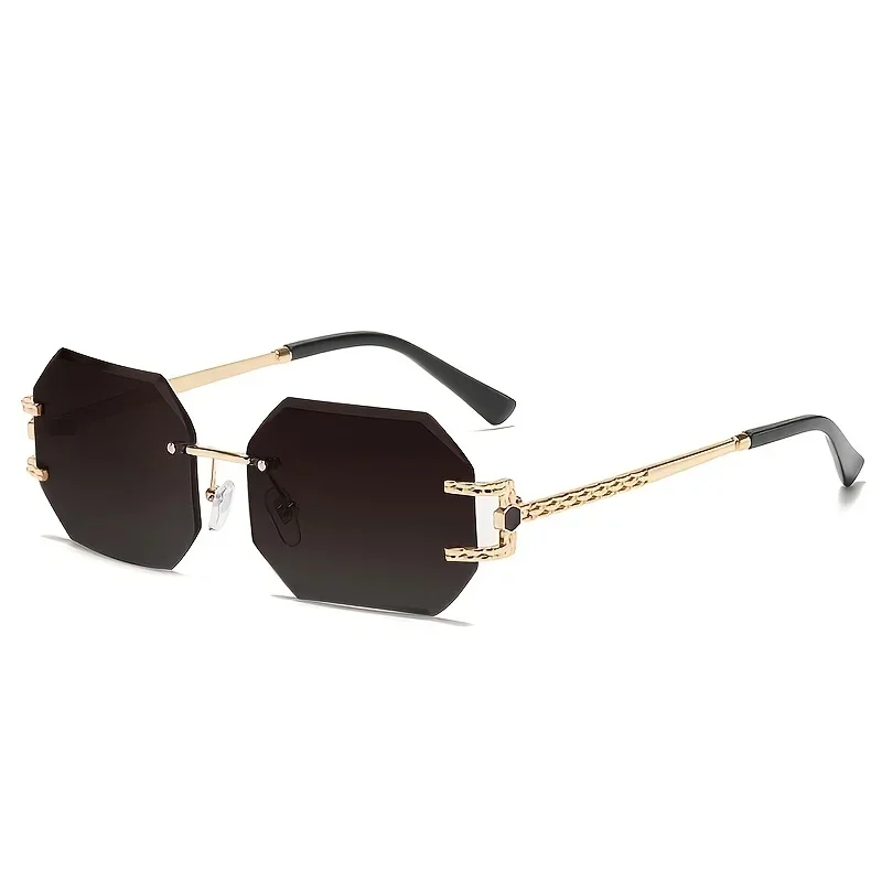Óculos de sol sem aro para mulheres e homens marca designer polígono, óculos de sol feminino na moda retângulo, uv400.
